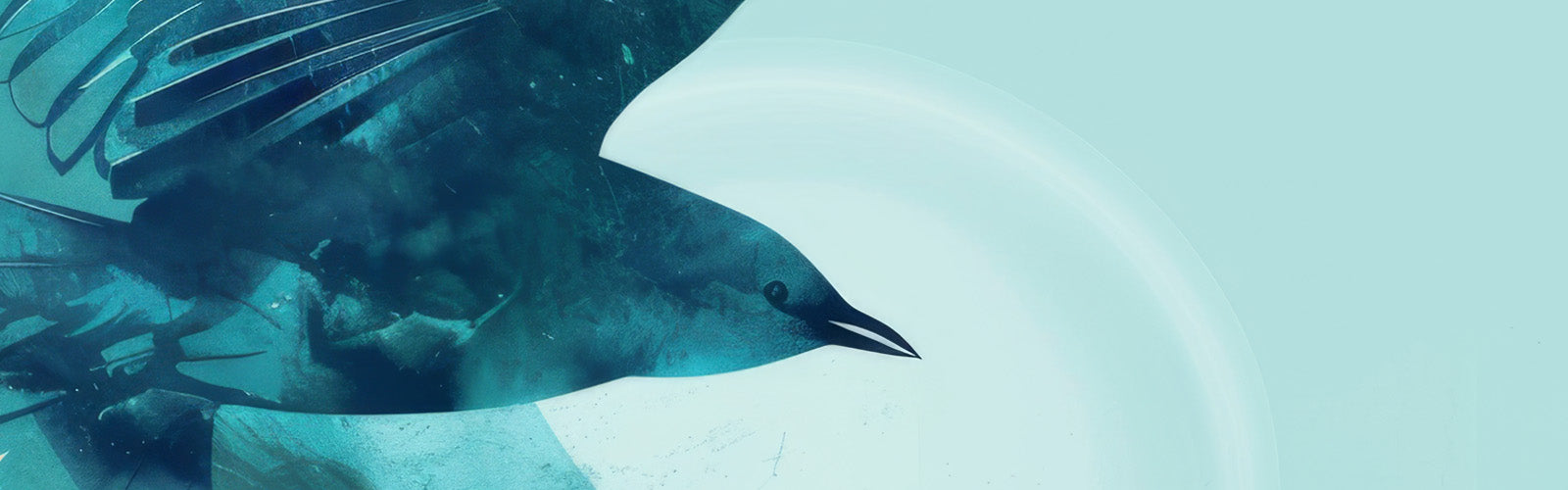 The design, bathed in soothing blues and turquoise, features a stylized blue bird soaring gracefully against a backdrop reminiscent of a moonscape...