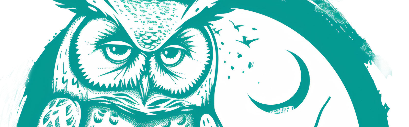 Sleepy Owl - a charming and whimsical piece. This design features a cartoonish and simple turquoise owl, peacefully perched in a tree against the backdrop of a bright moon. The owl exudes a calm and sleepy demeanor, adding to the relaxed and casual vibe of the design. The Sleepy Owl is sure to become a favorite for those who appreciate a touch of whimsy in their style.